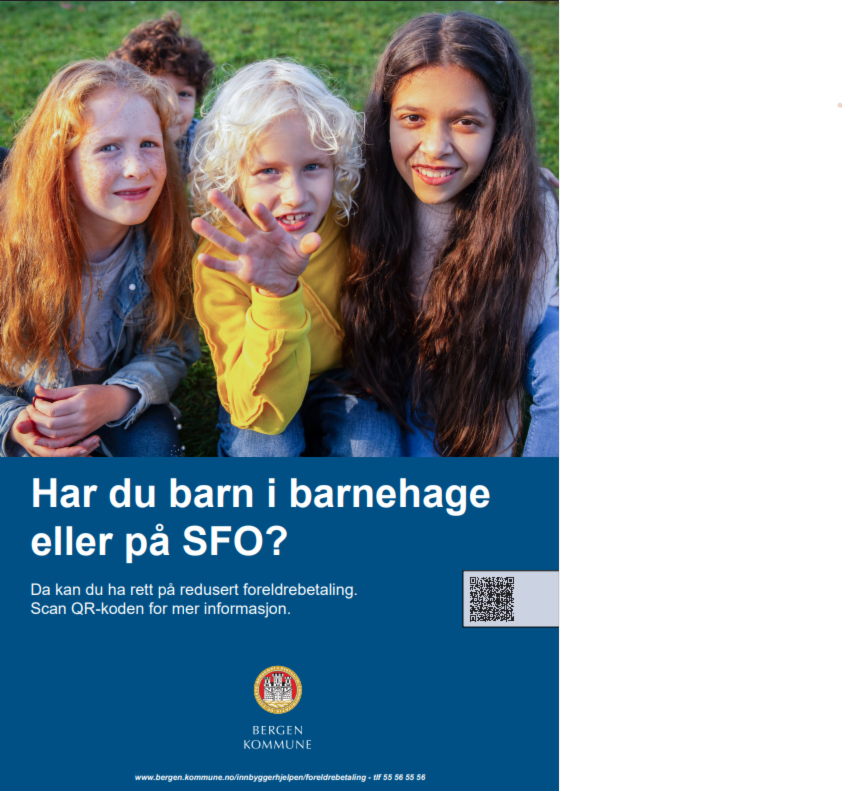 Informasjon om ordningene, søknad og inntektsgrensene for disse finner du her: https://www.bergen.kommune.no/innbyggerhjelpen/barnehage-og-skole/barnehage/betale-for-barnehageplass/soke-om-redusert-foreldrebetaling-i-barnehage-og-sfo