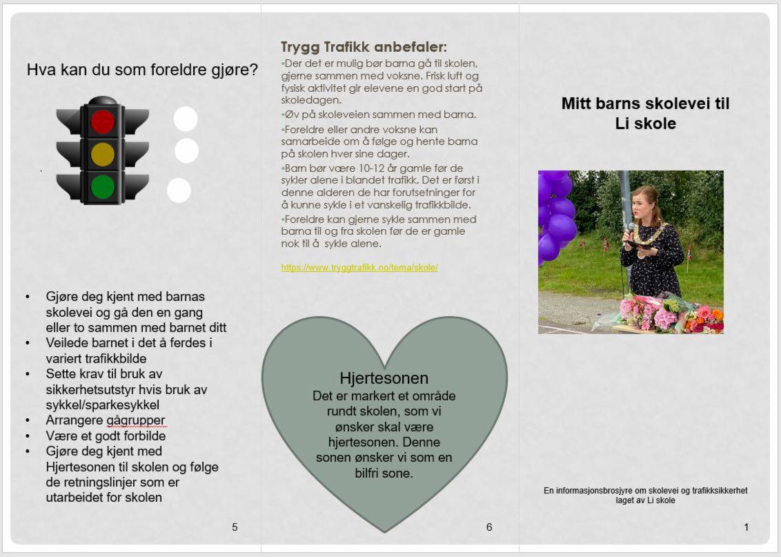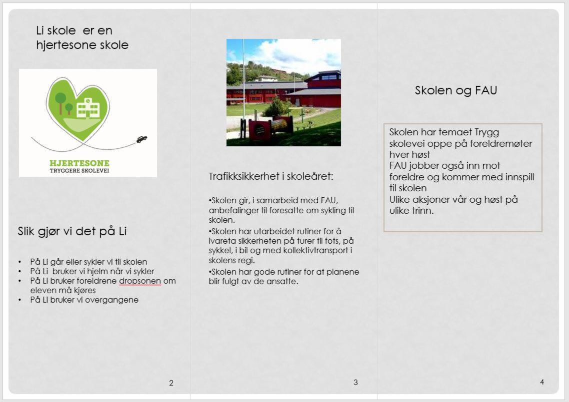 Ved Li skole står Hjertesone»-skiltet står ved innkjøringen til skolen og et «Droppsone»-skilt er plassert på parkeringsplassen. Det er også egne SFO-plasser.