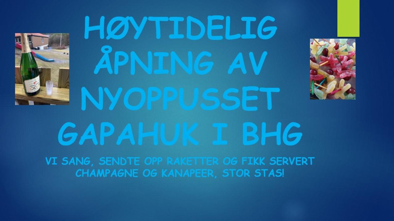 Vi har fått fornyet Gapahuken vår og den er blitt skikkelig fin. Det måtte selvfølgelig feires med en ny og høytidlig åpning