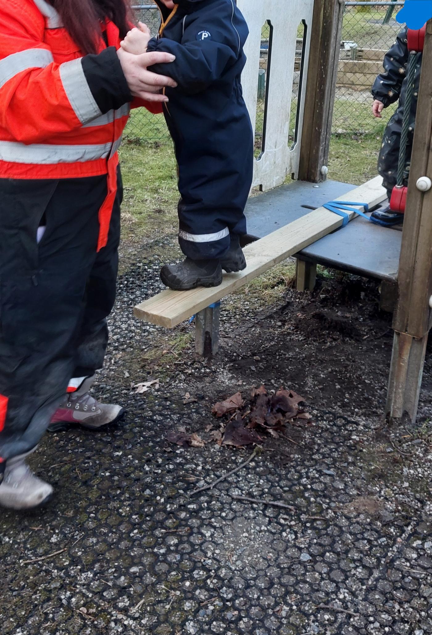 Vi la til rette for fysisk lek – klatre, løpe, rutsje, balansere, Vi lagde en planke på sjørøverskuten der alle kunne balansere og hoppe i havet.