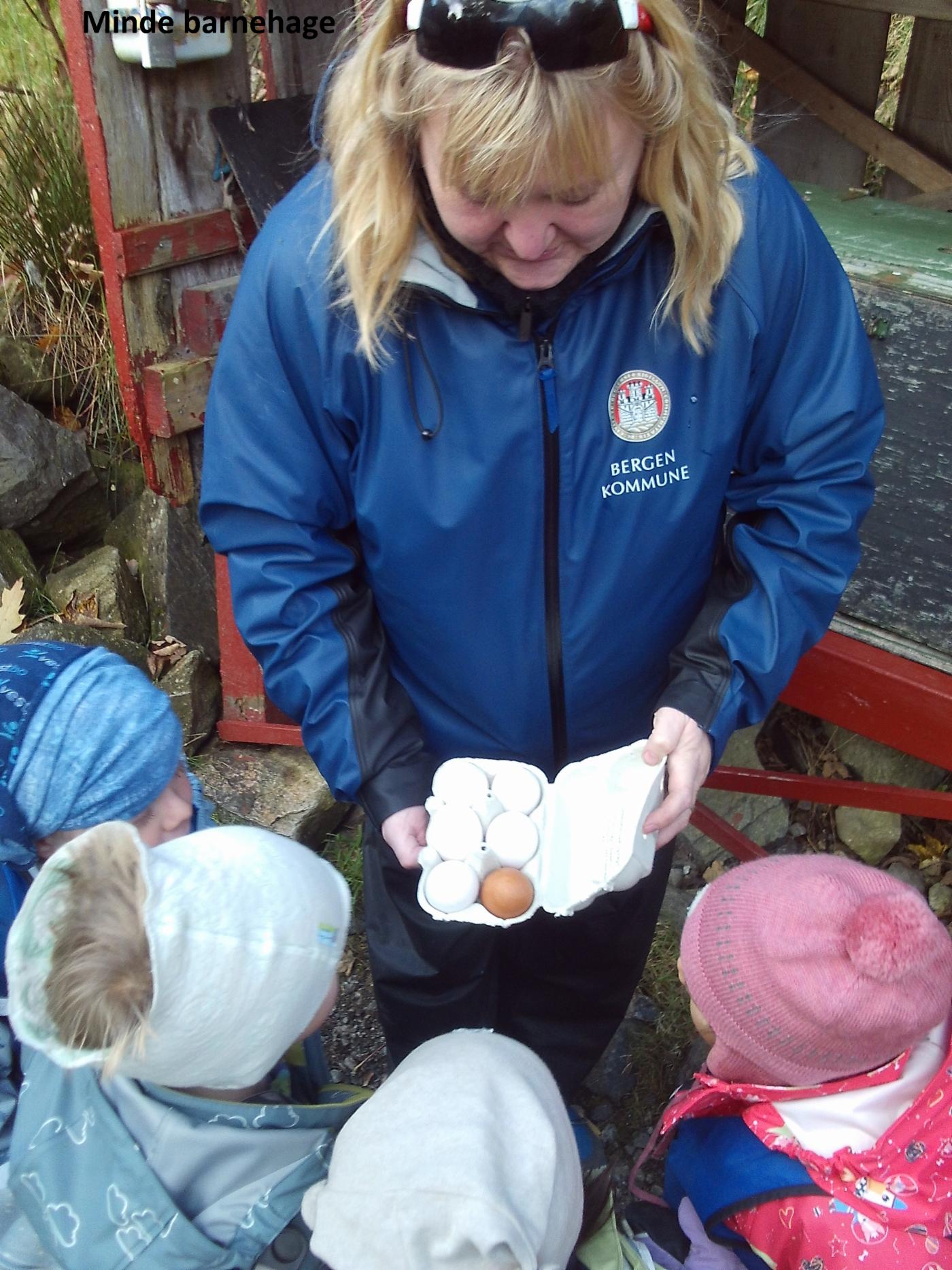 Sandviksfjellet og Lyderhorn var på tur i Langeskogen i starten av oktober. De kjøpte med seg egg fra gården og barna fikk være med å lage pannekaker i barnehagen dagen etter.