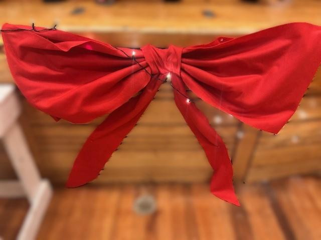 Scenen var pyntet med lys og en flott rød sløyfe.