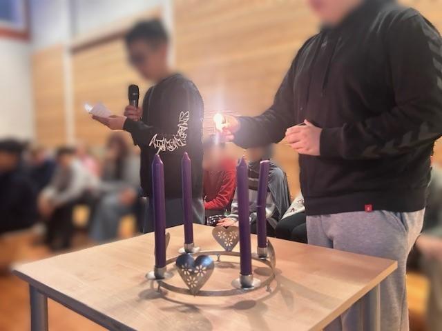 På samlingen tente vi det første lyset og sang 1.vers av*Tenn lys*