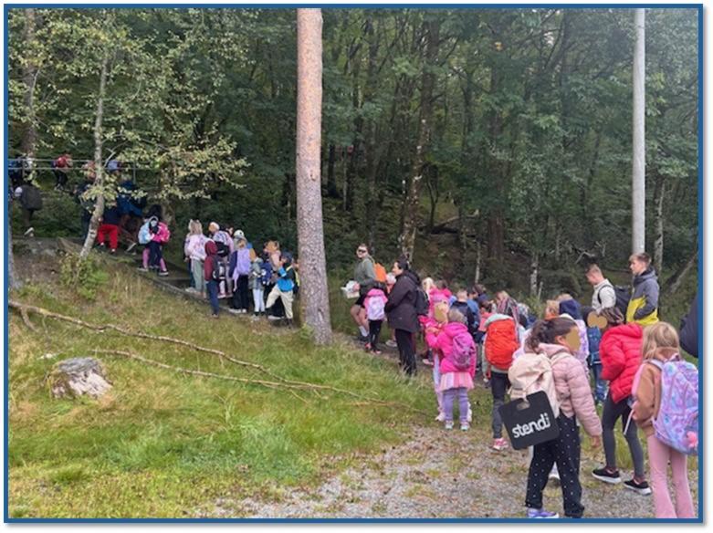 I år gikk den korteste turen til Nordnæsdalen, der elevene fikk en fin og overkommelig tur med god tid til lek og utforskning.