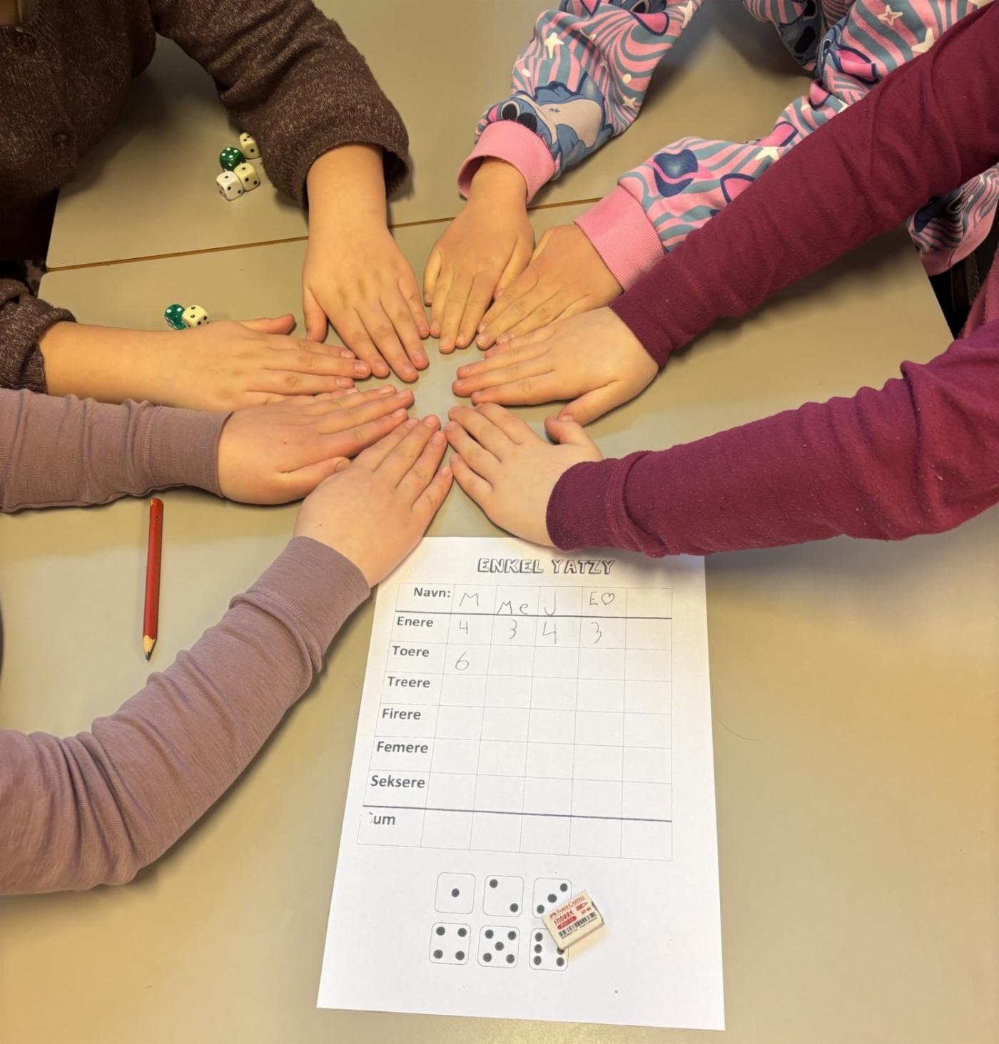 Målet med Matematikkens dag er å vise hvordan matematikk handler om mer enn tall og ligninger – det er samarbeid, kreativitet, problemløsing og logisk tenkning i praksis. Gjennom stasjonsarbeid, praktiske oppgaver, spill, konkurranser og utforskende aktiviteter fikk elevene mulighet til å oppleve faget fra nye vinkler.