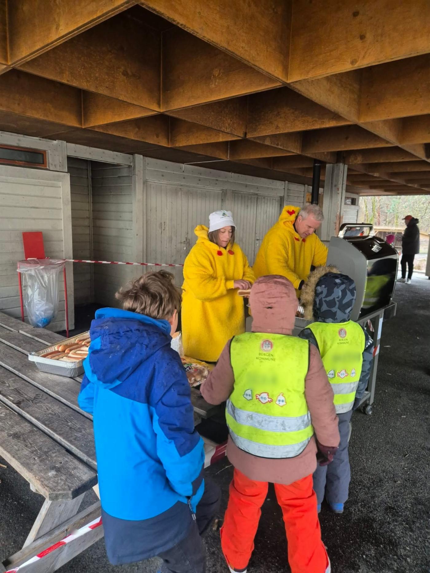 Grillmester Geir og grillassistenten Kristin sørget for nystekte pølser til store og små. Lene og Camilla sørget for ketchup og Dj Ingrid fikset musikk.