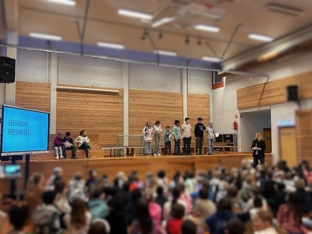 Nye elevrådsrepresentantene ble presentert. “Gamle” trivselsledere takket av for innsatsen de har lagt ned for skolen og skolemiljøet. Samtidig ble de nye trivselsledere presentert for hele skolen.