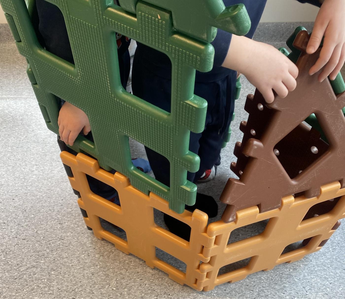 Det er populært med mindcraft blant førskolebarna. Vi kan bygge stor borg med store klosser og små borger med plus plus.