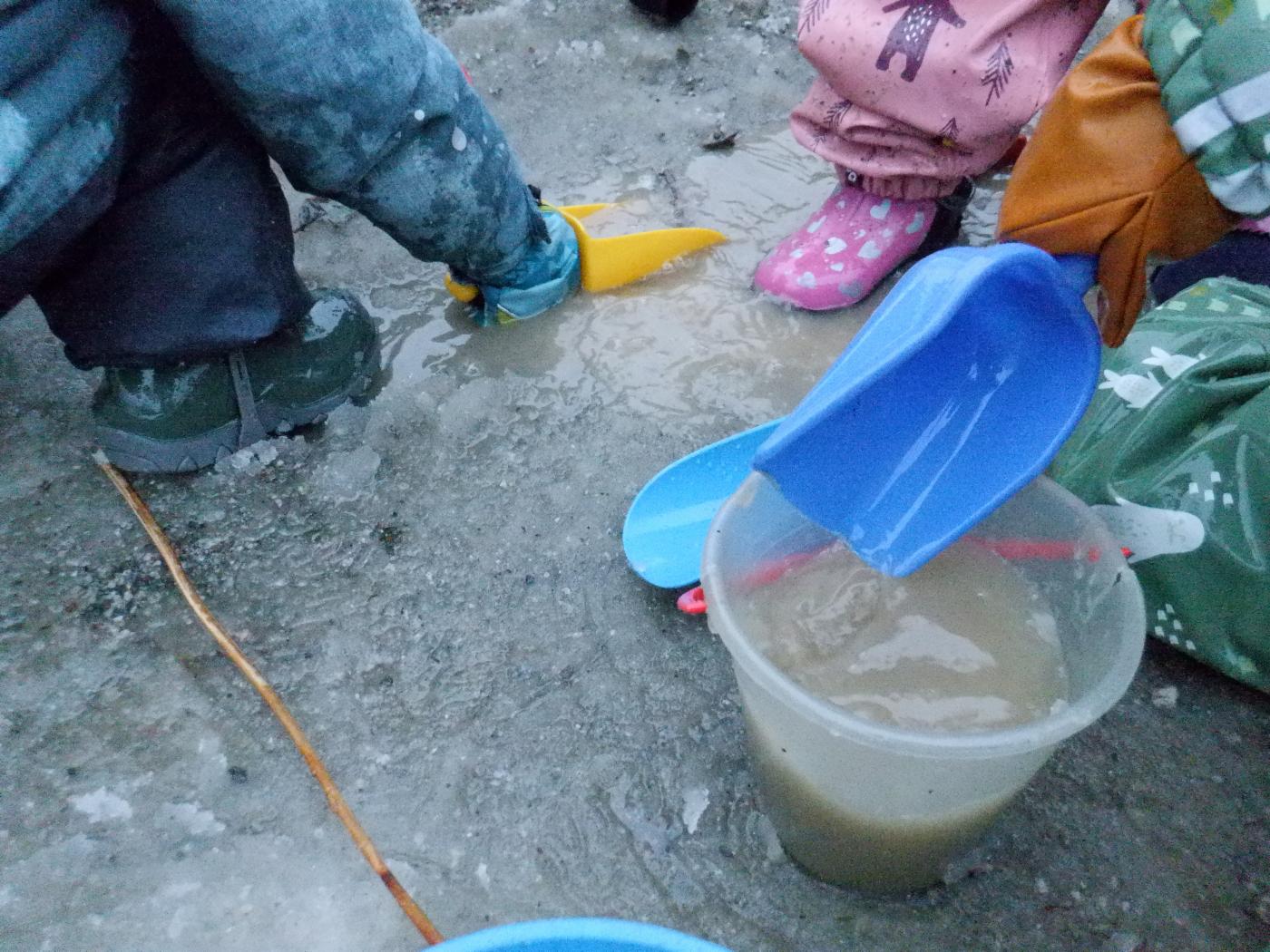 Barna oppdager nye fenomener og utforsker omgivelsene i uteleken og på tur, for eksempel hvor og hvordan vannet renner en regnværsdag eller tørre blader som blåser i vinden en høstdag.