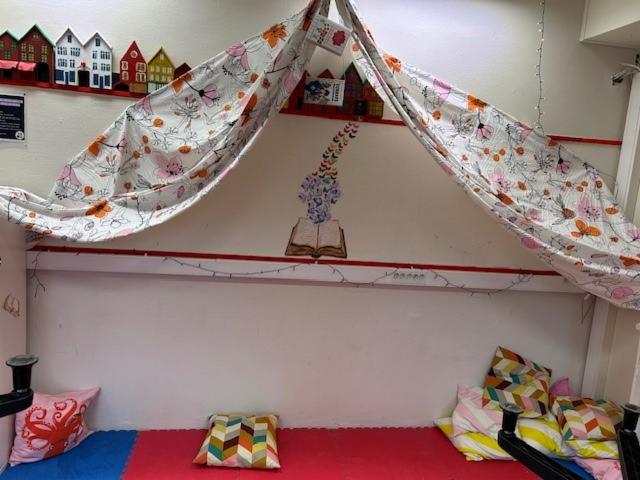 Dei får ha med seg pledd, putar eller lese-bamsar på skulen, og det er mange koselege lesekrokar å sjå! Elevane skriv logg over kor mykje dei les, og det blir og laga mange bok-meldingar og skrive tekstar med utgangspunkt i bøker. I første klasse har elevane no lært alfabetet, og er i gong med lesing i små hefter. På alle trinn les og dei voksne for elevane, ved at klassen har ei god høgtlesingsbok under Lesefestivalen. 1.-4.trinn har vore heldig å få forfattarbesøk av Vegard Markhus, som inspirerte både til lesing, skriving og teikning.
