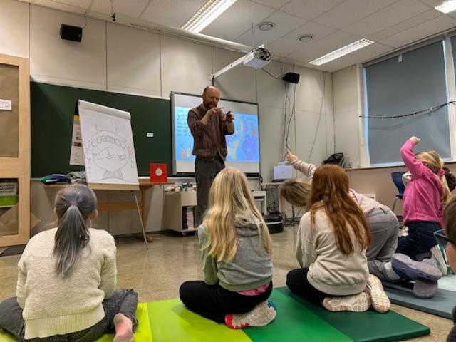 I gangen over vestibylen har vi et felles stort verdenskart, som syner dei ulike trinna si reise i Lesefestivalen. For kvar time elevane på eit trinn les i snitt, kan dei nemleg flytte brikka sin på verdenskartet. På den måten les dei seg rundt i verda, til destinasjonar der noko kjekt skjer for heile klassen. Eit trinn las seg til London og hadde afternoon-tea og fotballkamp, eit anna til Danmark der dei spiste røde pølser og hadde Lego-byggekonkurranse. Eit trinn las seg til Tyrkia, der dei laga til spa i klasserommet! Lesefestivalen byr dermed og på læring om geografi, kultur og reise, og fleire trinn har tverrfaglege prosjekter om andre land eller religionar i denne perioden.