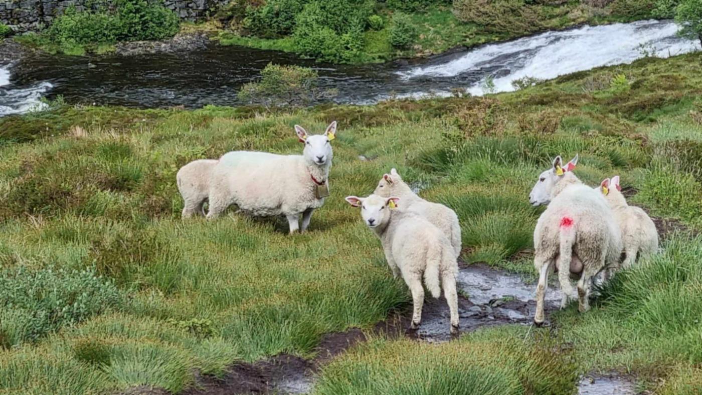 Fem sauer på beite