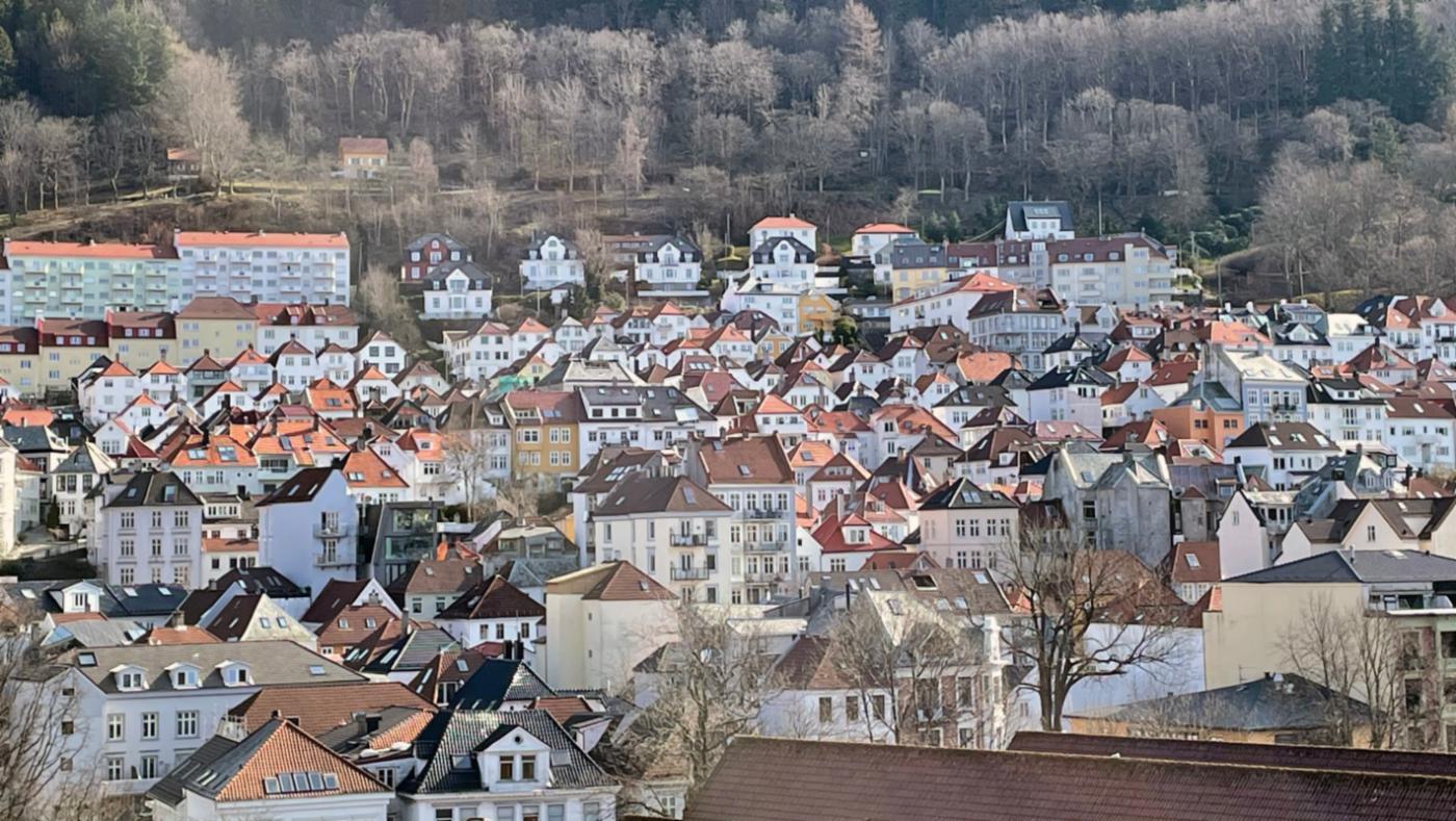 BOMILJØ: Bergen har mange slags bomiljø. Her ser du bebyggelsen i Fjellsiden