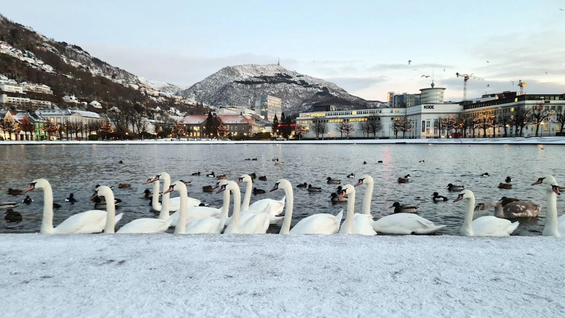 SVANER I BYEN: Svaner på overvintring i Lille Lungegårdsvann