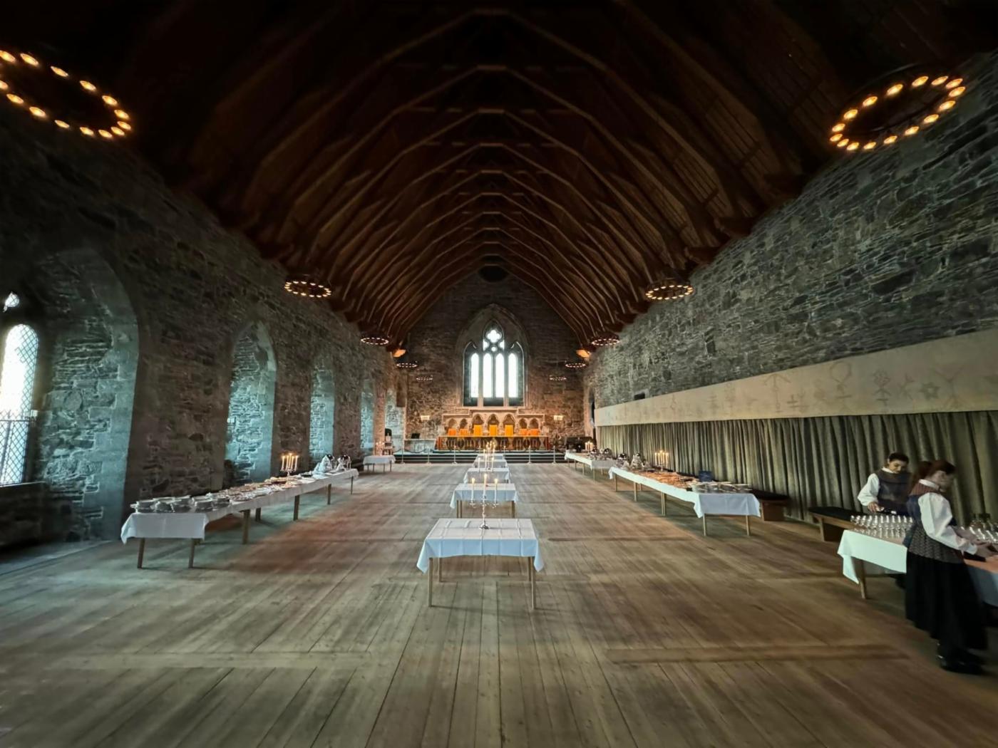 Håkonshallen med serveringsbord